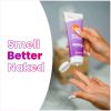 Using the recommended pea-size amount, the tube will offer 150 underarm applications (two armpits) or 300 “anywhere else” uses. A little goes a long way.