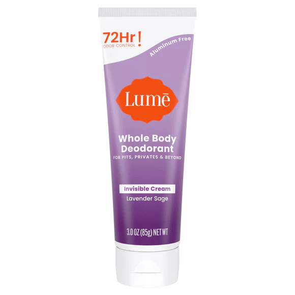Lume’s travel friendly Invisible Cream Deodorant Tube allows you to easily control the amount you use. Use fingertips to swipe the dispensed cream on pits, privates or anywhere else you have odor but wish you didn’t. Our water based formula won’t stain your clothes and leaves no residue behind.